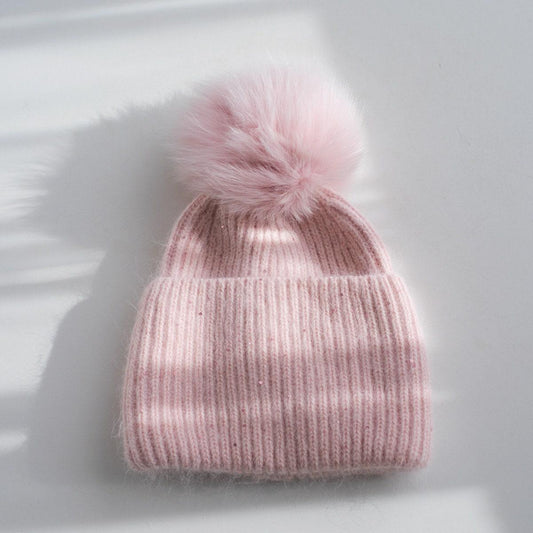 Knitted Beanie hat with Removable Pom Pom for Women