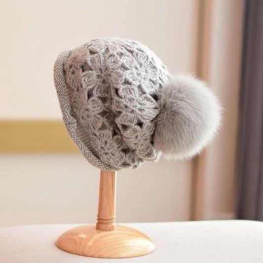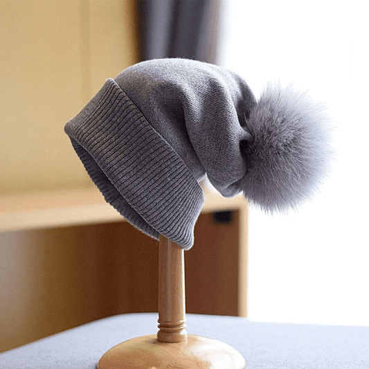 2 Way Knitted Slouchy hat with Removable Pom Pom
