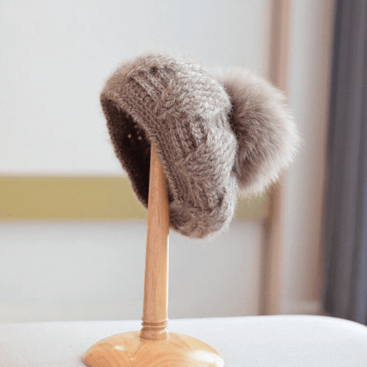 2 Way Knitted Beanie with Removable Pom Pom and Ear Protection