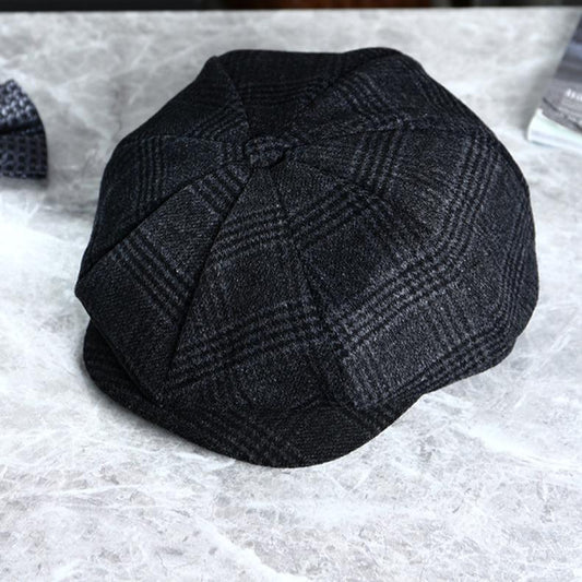 Premium Australian Wool Newsboy Cap - Mocha with Plaid Brim