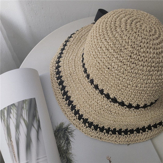 Oversized Summer Straw Hat with Bow Tie